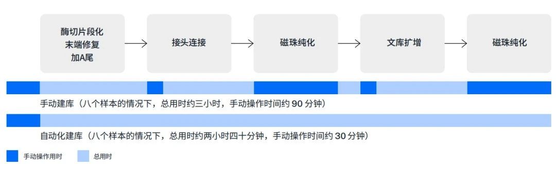 圖 1:全自動化 Twist BioScience Library Preparation EF 2.0 工作流程減少了約 67% 的手動操作時間(樣本數(shù)量為 8 個)